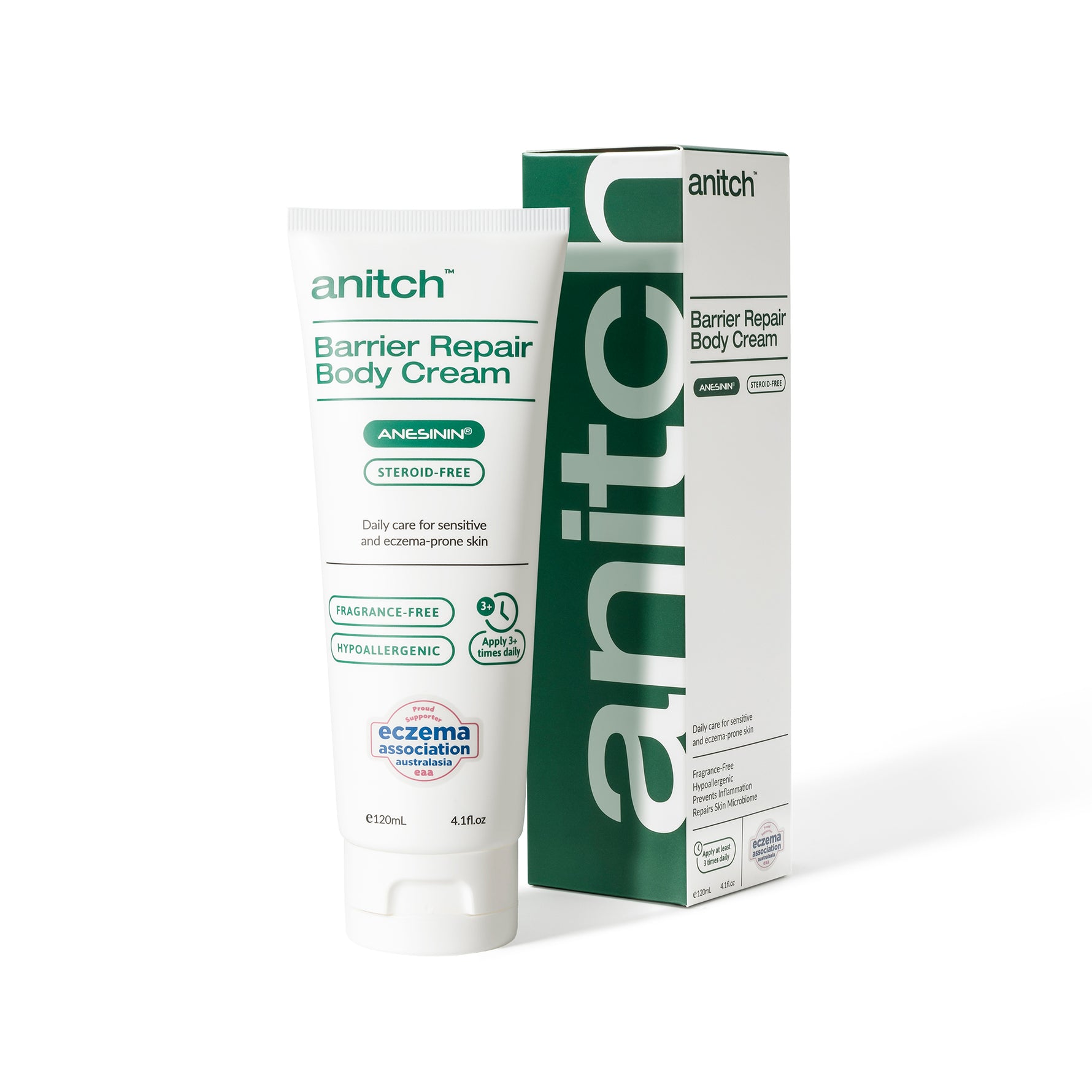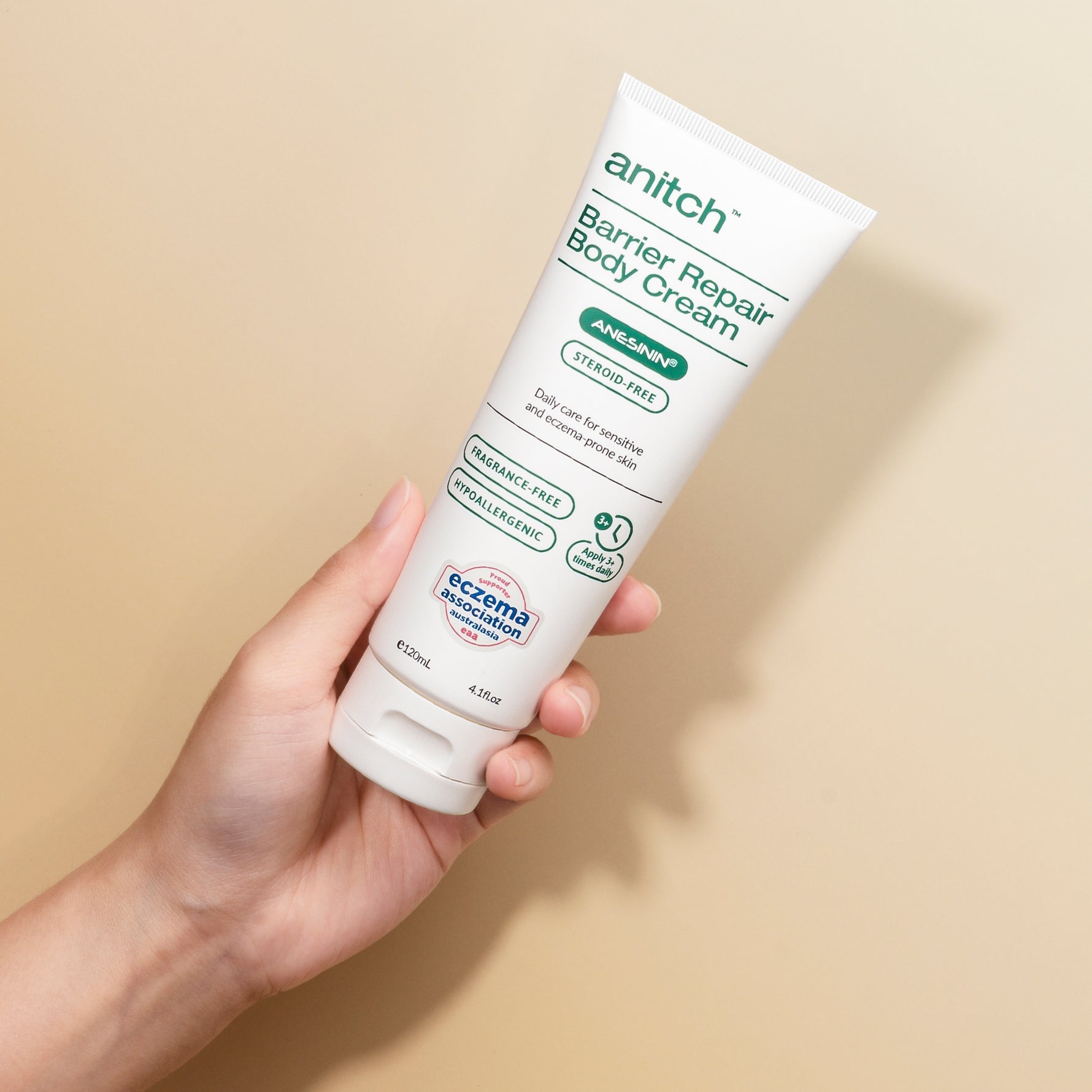 Relieves dryness, itching, redness and irritation caused by eczema. This portable tube of Barrier Repair Cream is perfect for daily use whilst you're on the move. It locks in moisture for smooth, soft, and nourished skin and the Anesinin® Barrier Support helps to strengthen the skin barrier and tame harmful bacteria. Our creams are suitable for the whole family including infants.